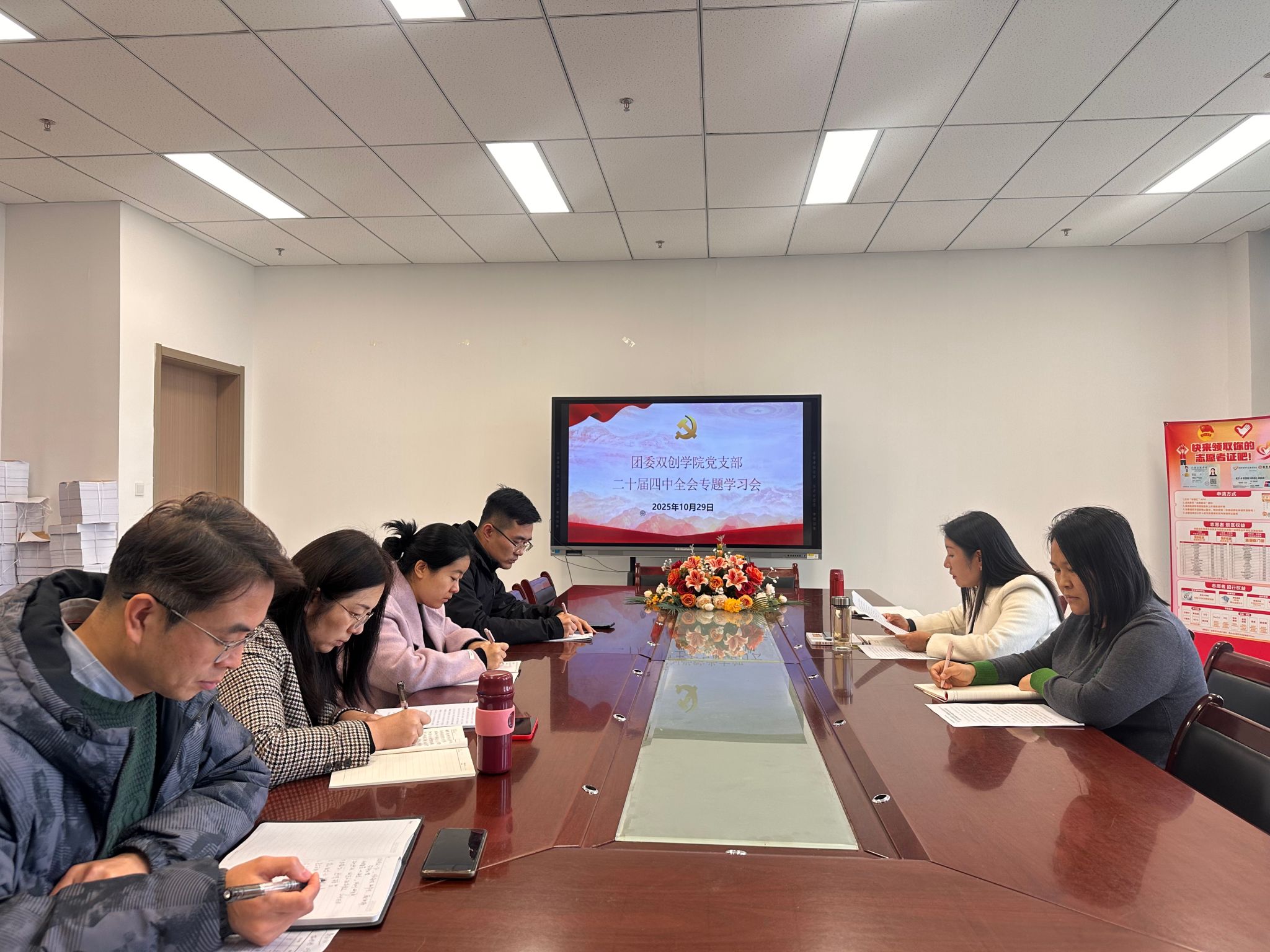 为深入学习领会党的二十届四中全会精神,准确把握《中共中央关于制定国民经济和社会发展第十五个五年规划的建议》的核心要义。2025年10月29日14:30,团委双创学院党支部在教学楼⑧925会议室组织召开了党的二十届四中全会专题学习会,支部全体党员参会,会议由支部书记滑娟主持。